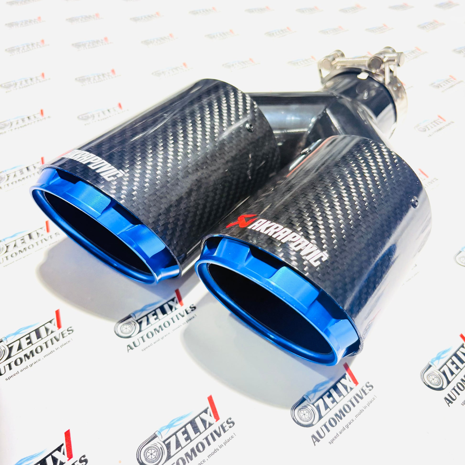 Akrapovic Dual Exhaust Tip | Blue Outlet Design with Carbon Fiber Finish
