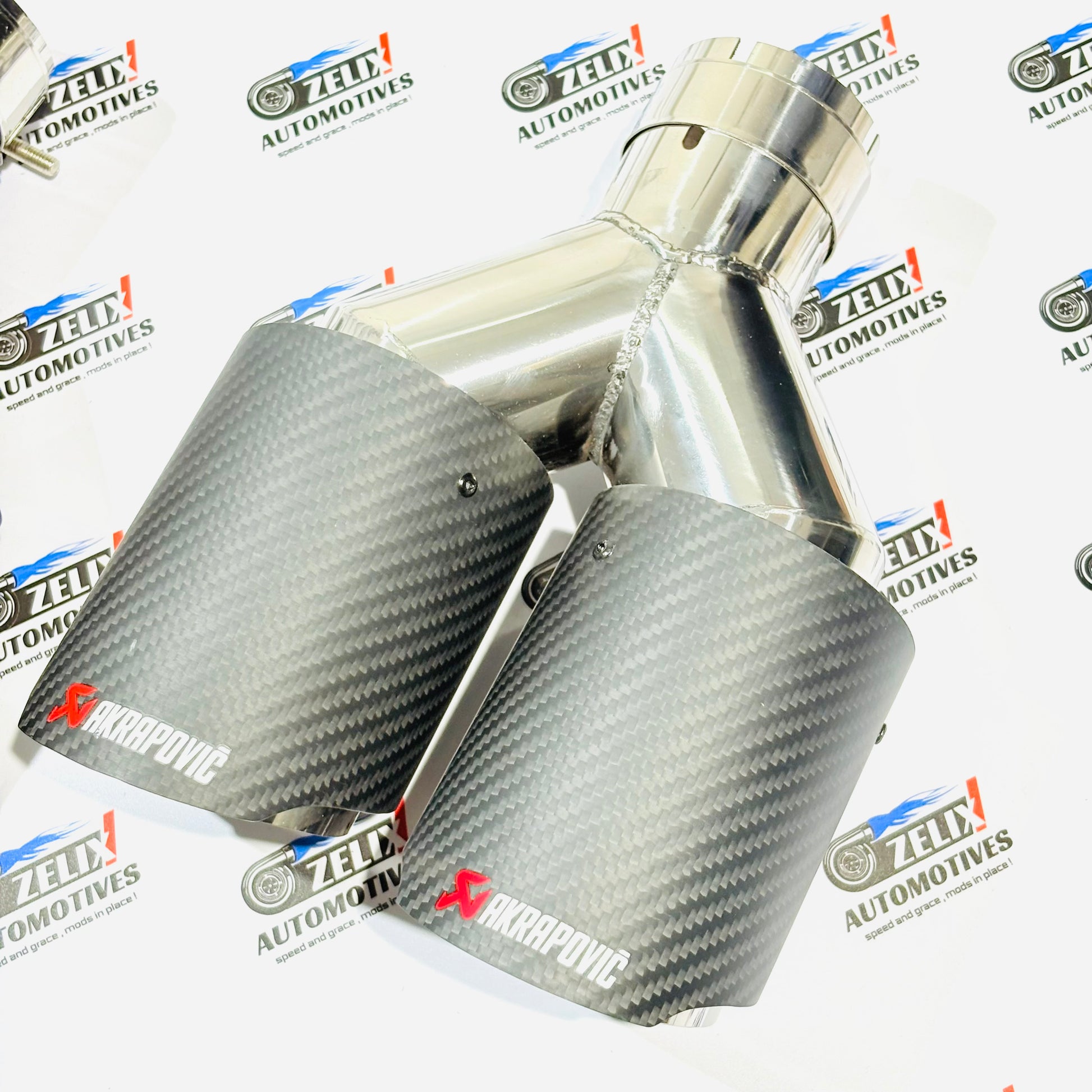 Akrapovic style dual exhaust tip designed for a premium performance look.