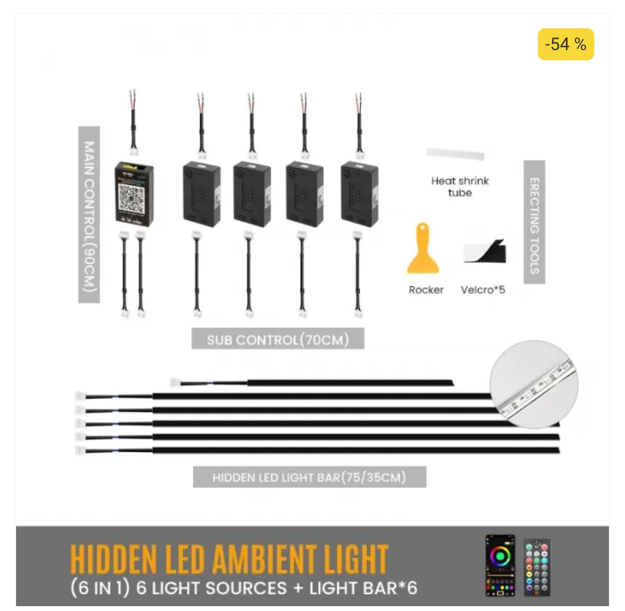 • 6-piece RGB LED kit for ambient interior lighting