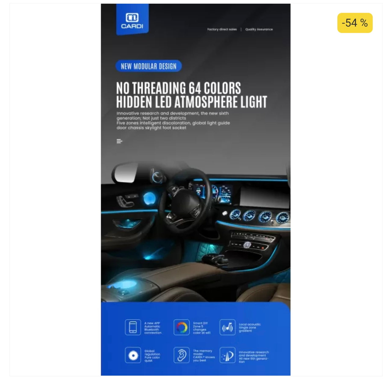 The CARDI K3 Active Ultra 6-Piece Ambient Light Kit combines technology, style, and simplicity — perfect for drivers who want to add a touch of luxury and personality to their ride.