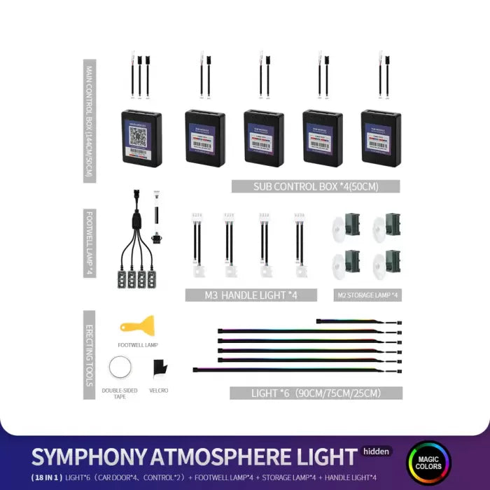 CARDI K4 Active Ultra Ambient RGB LED Interior Lights - 18 Pieces